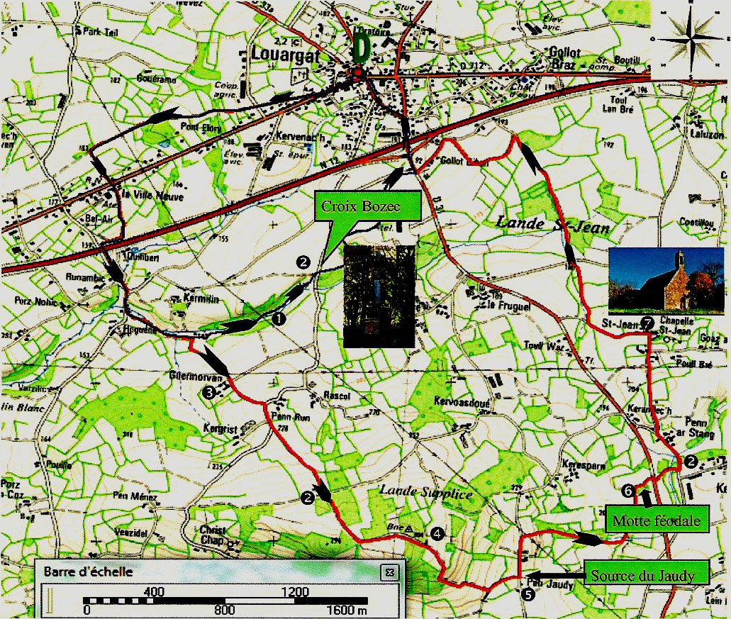 Siège de la plus importante seigneurie de Louargat avant la révolution, ayant possédé : colombiers, vivier, jeu de paume, chapelle, grande auge ronde (3,80m de diamètre, d'environ 18 tonnes, aujourd'hui visible au jardin public de Lanvollon 22).