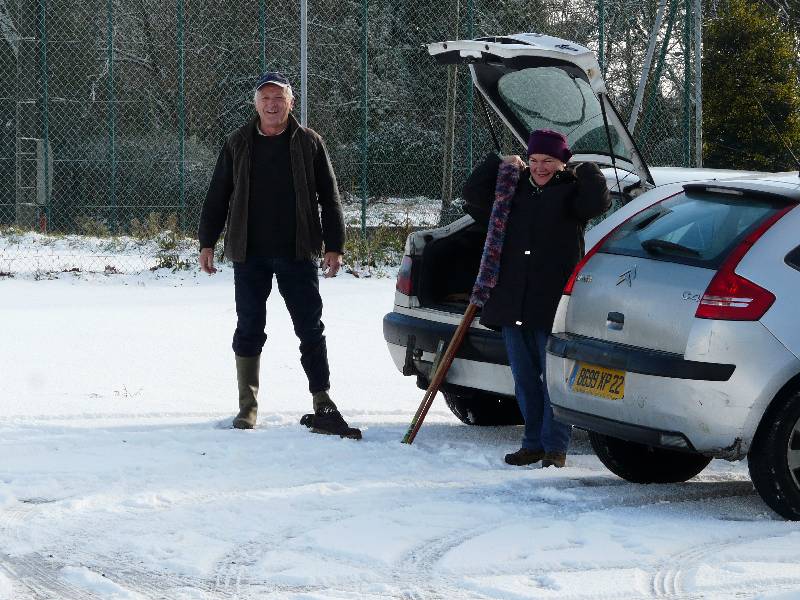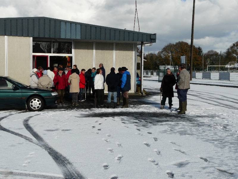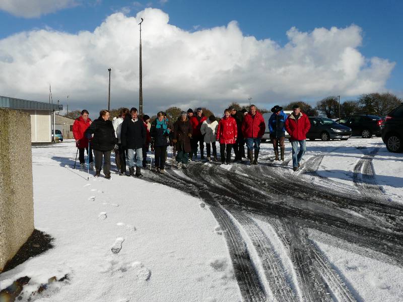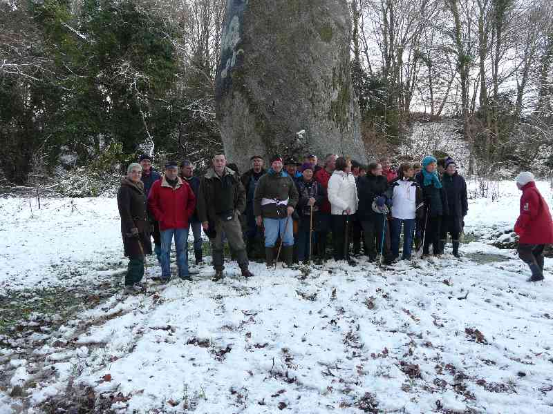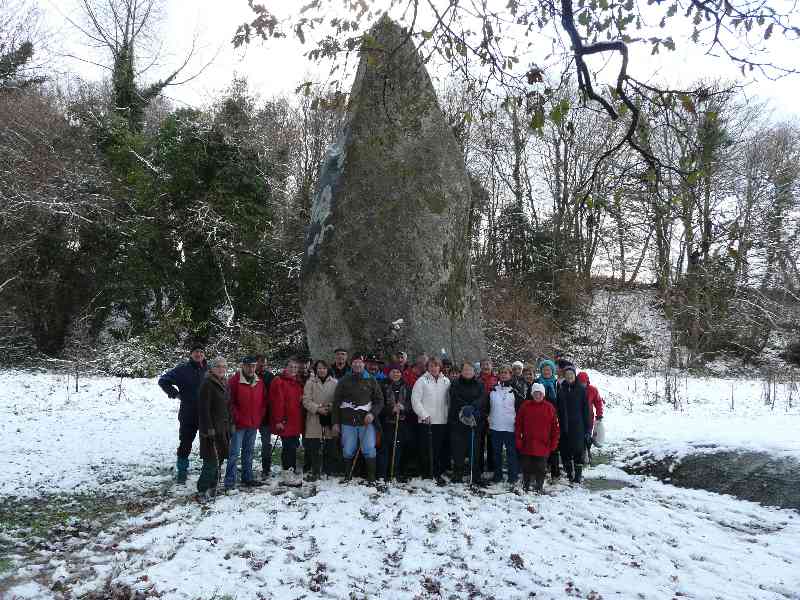 notre groupe au menhir de Pergat sous la neige