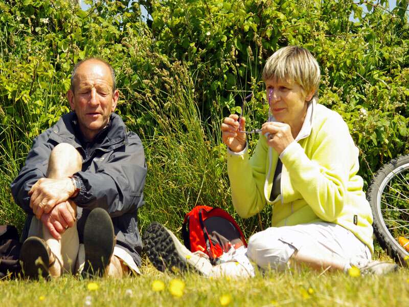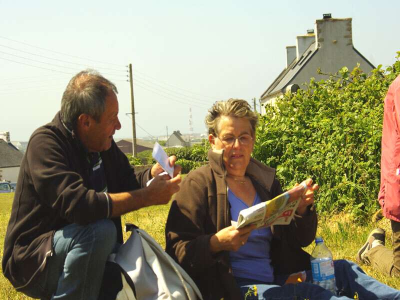 | pique-nique a Ouessant : la presidente et le secretaire (photo : Michel Coatantiec)