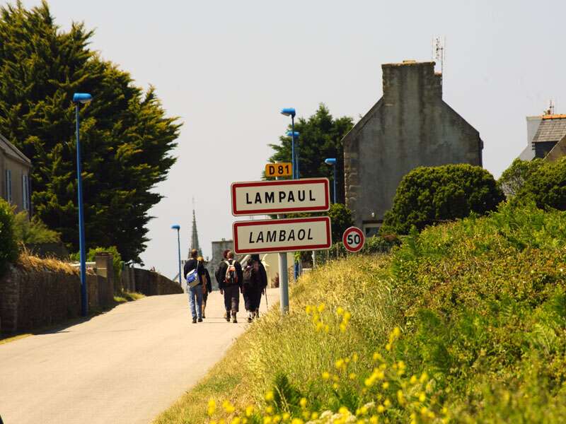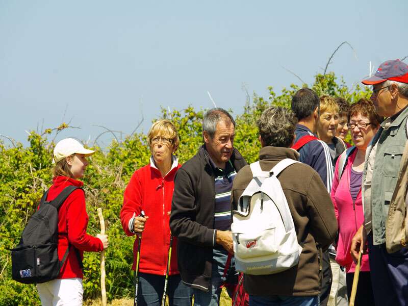 | un groupe de randonneurs a l'entree de Lampaul en Ouessant (photo : Michel Coatantiec)