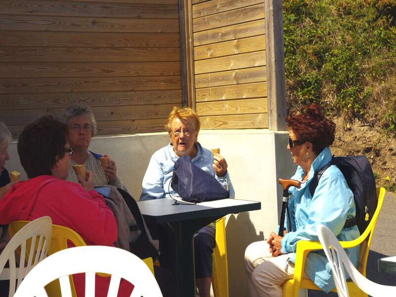 | La presidente a gauche avec des amis en pique nique a Ouessant (photo : Yvon le Guilloux)