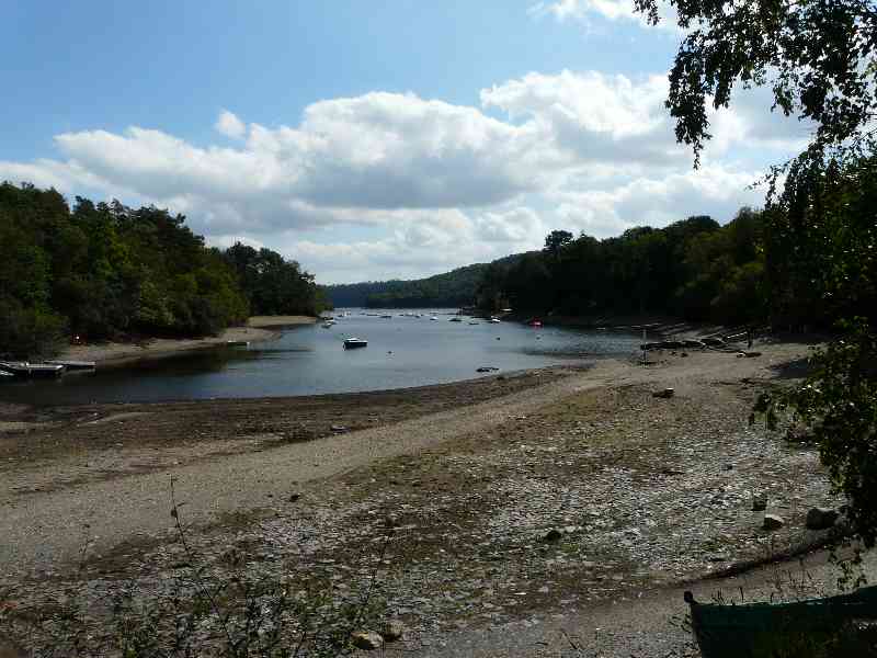 | Vue sur le lac de Guerledan, le niveau de l'eau a diminue